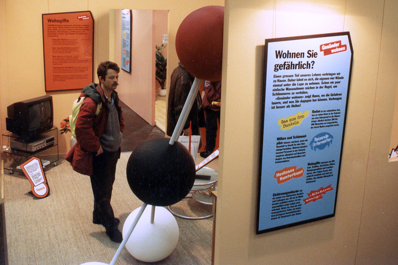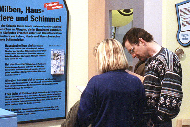 Sinnform gestaltete eine spannende und interaktive Wanderausstellung zu den Themen Hausstaubmilben, Radon, Lüften, Wohngifte und Elektrosmog. Jedes Gebiet wurde in einem eigenen Raum behandelt. Heikle Punkte und Tipps dazu waren in einer Musterwohnung angegeben. Laien erfuhren so auf einfache Weise, wie man sich gesund einrichtet. Die Ausstellung wurde an allen grossen Publikumsmessen in der Deutschschweiz gezeigt. Das Echo bei Auftraggebern, Besuchern und Medien war äusserst positiv.